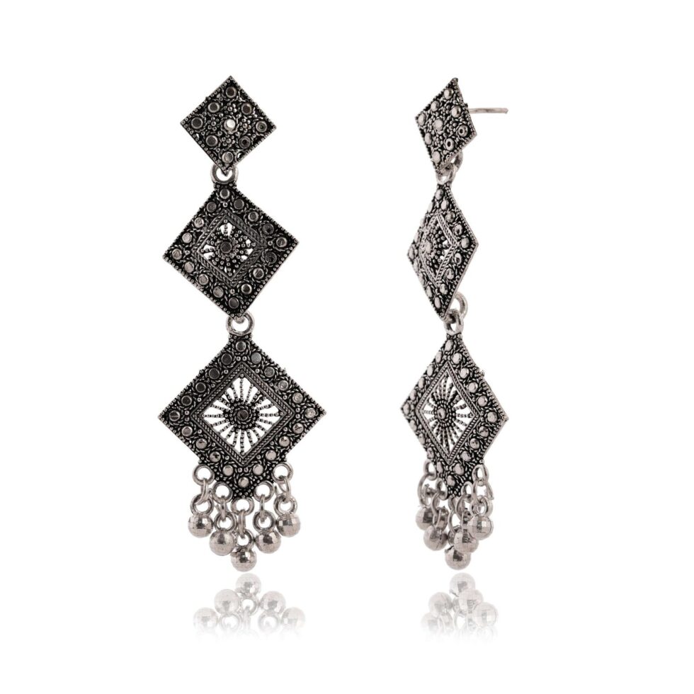 Women Traditional Silver AZ838-OXidised Jhumka Set | German Silver Chand Baliyan & Jhumkas Earrings for Women | Birthday & Anniversary Gift -AZ838-OX-ER47